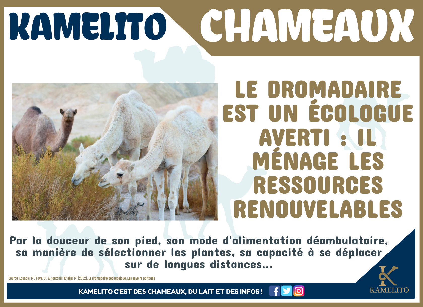 Le chameau va jouer un rôle majeur dans la transition écologique en raison de son faible impact environnemental.